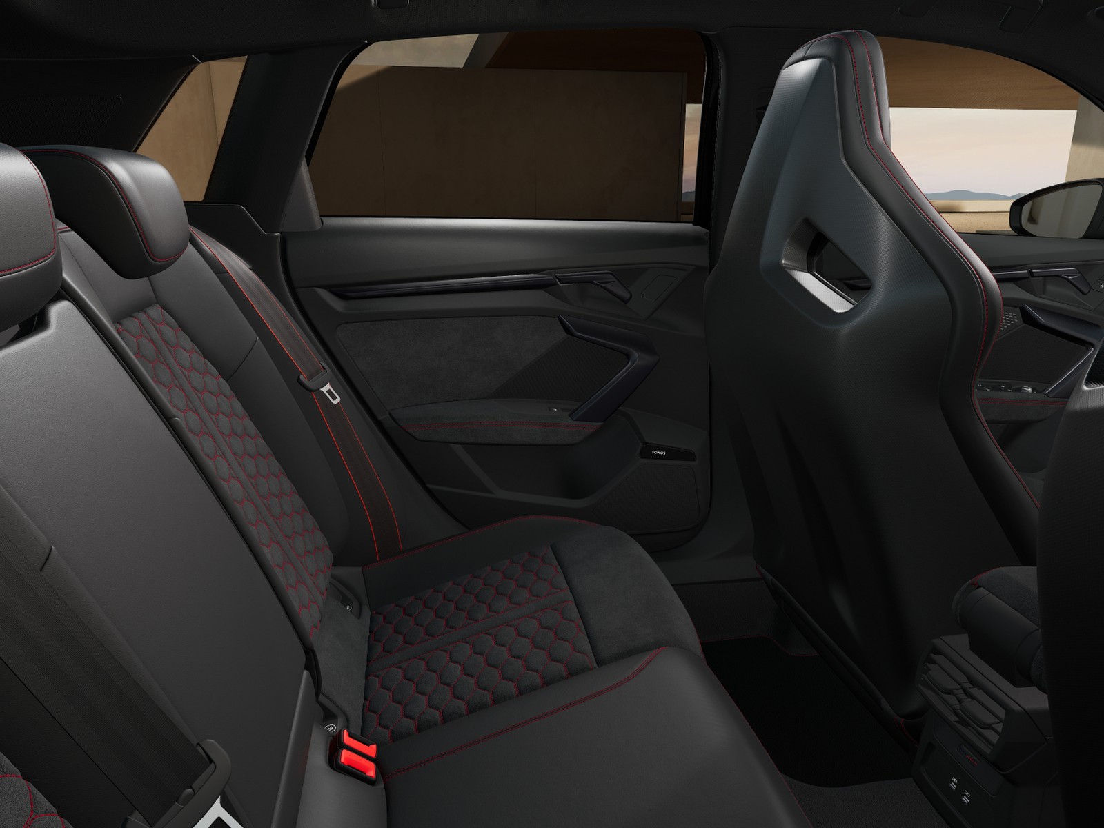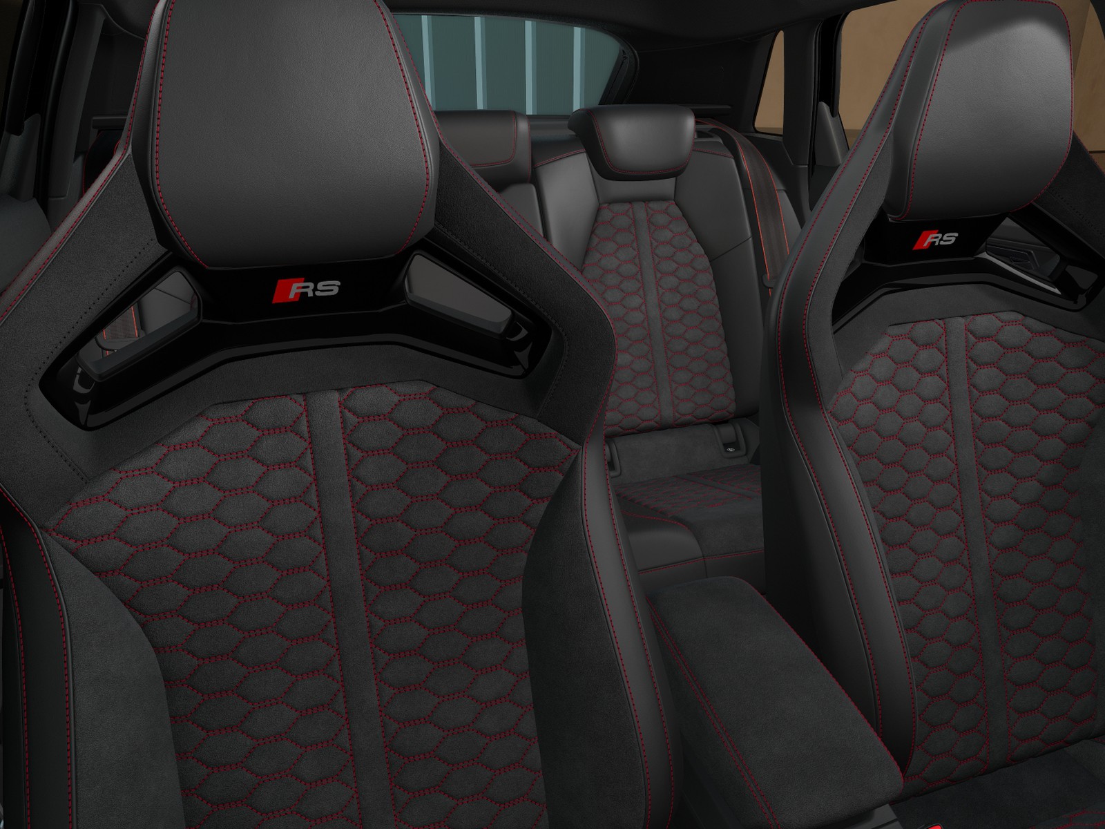 Sedili anteriori sportivi rs con poggiatesta integrati e fianchetti dei